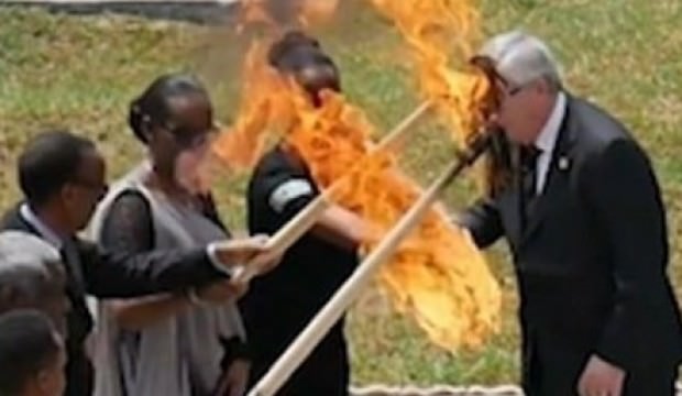 AB Komisyonu Başkanı Jean-Claude Juncker, Ruvanda Ruanda soykırımının 25. yılı anma töreni sırasında neredeyse Ruanda First Ladysi Jeaette Kagameyi ateşe veriyordu. Kameralara yansıyan görüntülerde, anma meşalesini alan Junckerin "Anma Işığı" anıtının ateşini yanındakilerle birlikte tutuşturduktan sonra geriye doğru çekilirken, yanlışlıkla elindeki yanan meşaleyi First Ladynin suratına doğru yaklaştırdığı ve Jeaette Kagamenin, hızlı bir refleks ile doğru zamanda birkaç adım geri giderek yanmaktan kurtulduğu görülüyor.