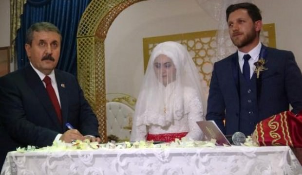 BBP Genel Başkanı Destici, Konyada, partisinin il Başkanı Osman Seçgin’in kızı Merve’nin düğün törenine katıldı. Düğün salonunda düzenlenen törenle evlenen Merve ve Mustafa Çoban çiftinin nikah şahitliğini yapan Mustafa Destici, genç çifte mutluluklar diledi.