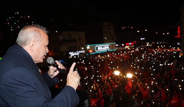 Cumhurbaşkanı Recep Tayyip Erdoğan, Sarıyerde düzenlenen mitinge katılarak vatandaşlara seslendi. Erdoğan, "CHP kimlerle ortaklık yapıyor. 4lü mekanizma. Şimdi bu 4lü mekanizmaya gelin pazar günü Osmanlı tokadını sandıklarda atalım. Bir kadın çıkıyor diyor ki biz sırtımızı YPGye dayadık. PYDye dayadık. Be kadın biz de sırtımızı milletimize ve Allahımıza dayadık. Şuanda Sarıyeri 5 yıldır yöneten zihniyet bunlar değil mi? Bu CHP bunlardan farklı mı? Bunlarla zaten el ele omuz omuza dolayısıyla bizim bu oyunu bozmamız lazım. Pazar günü bu işin gidişini değiştirelim. Seçimden sonra şayet bu pati kazanırsa CHPnin İstanbul ve Ankara Büyükşehir Belediyelerine eş başkanlar atayacak mı eğer öyleyse bunların kim olduğunu bilmek bu şehirde yaşayan insanların hakkı değil mi?" şeklinde konuştu.
