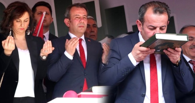 KURANI KERİME EL BASIP YEMİN ETTİBaşkan Özcan, devir teslim töreninin ardından, seçim sürecinde görevine yemin ederek başlayacağına dair verdiği sözü yerine getirmek için binlerce vatandaşın beklediği Demokrasi Meydanına geçti. Burada saygı duruşunun ardından, Bolu Belediyesi bandosu eşliğinde İstiklal Marşı okundu. Özcan, meydanda kurulan sahnede Kuran-ı Kerim ve bayrağı 3er kez öptükten sonra elini Kuran-ı Kerime basarak, "Bolu Belediye Başkanı olarak, Bolumuzu tarafsız bir şekilde, kimseyi ayırmadan ve kimseyi kayırmadan gece gündüz çalışarak, istişareyi öne çıkararak, tüyü bitmemiş yetimin hakkını koruyup, kollayarak, harama el uzatmadan, hukukun üstünlüğüne ve Cumhuriyet değerlerine bağlı kalarak, kurucu liderimiz Mustafa Kemal Atatürkün izinden ayrılmayarak yöneteceğime Allahım ve namusum üzerine yemin ediyorum." sözlerini söyleyip yemin etti.EŞİNİN İSTEĞİ ÜZERİNE KURBAN KESİLMEDİÖzcan, burada toplanan kalabalığa teşekkür etti. Bu sırada belediye personeli tarafından alana kurbanlık bir koç getirildi. Tanju Özcanın eşi Meral Özcanın isteği üzerine kurban kesilmedi. Kurbanlık koç belediye görevlisi tarafından Bolu Belediyesi Veterinerlik İşleri Müdürlüğüne götürüldü.ZABITANIN ÖNLEM ALMASINI İSTEMEDİTanju Özcan, daha sonra kentin en işlek caddesi olan İzzet Baysal Caddesi üzerinden Atatürk Anıtına yürüdü. Bu sırada zabıta ekipleri Tanju Özcan ile beraberindeki eşi Meral Özcanın etrafına güvenlik gerekçesiyle etten duvar ördü. Meral Özcan ve Tanju Özcanın isteği üzerine zabıtanın aldığı önlemler de kaldırıldı. Kalabalık eşliğinde Atatürk Anıtına gidildi. Tanju Özcan, Kuran-ı Kerim, Cumhuriyet Halk Partisi, Bolu, Politika