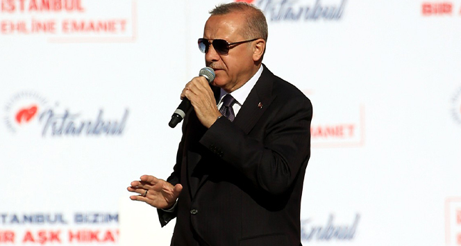 Cumhurbaşkanı Recep Tayyip Erdoğan, Yenikapıda düzenlenen Cumhur İttifakının Büyük İstanbul Mitinginde kürsüye çıktı. Mitinge katılan kalabalıkla birlikte Kayahanın “Bir Aşk Hikayesi” şarkısını söyleyen Cumhurbaşkanı Erdoğan, ardından kalabalığa hitap etti.