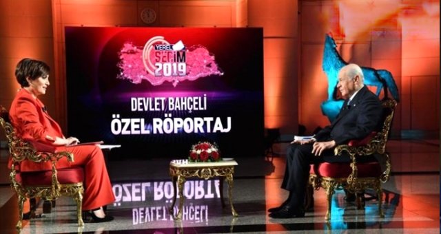 MHP Genel Başkanı Devlet Bahçeli, Habertürk TV, Show TV ve Bloomberg HT ortak yayınında soruları yanıtladı, gündeme ilişkin açıklamalarda bulundu."YÜZDE 52NİN ÜZERİNDE OY ALACAĞIZ"Bahçeli, "Cumhur İttifakının mahalli idareler seçimleri sonrasında inancım odur ki oyu yüzde 52nin üzerinde olacaktır" ifadelerini kullandı.BEKA TARTIŞMASI Türkiyede son günlerde beka tanımayan unsurların ve siyasilerin çıktığını ifade eden Bahçeli, "Bekasız bir ülke olur mu? Bekanın yok farz edildiği bir yer olabilir mi?" dedi. ERKEN SEÇİM SORUSU"Eğer bu hedeflediğiniz yüzde 52 olmaz, yüzde 50nin altına düşerse erken seçim Türkiyenin gündemine gelir mi?" sorusuna ise Bahçeli, "Gelmemesi lazım. Bizim açımızdan da gelmez" yanıtını verdi."Siz gündeme getirir misiniz?" sorusuna ise Bahçeli, "Hayır getirmeyiz. Cumhur İttifakının mahalli idareler seçimleri sonrasında benim inancım odur ki daha yüksek oranda olacaktır. Yüzde 52nin üzerinde olacaktır" cevabını verdi. Devlet Bahçeli, Politika, Güncel