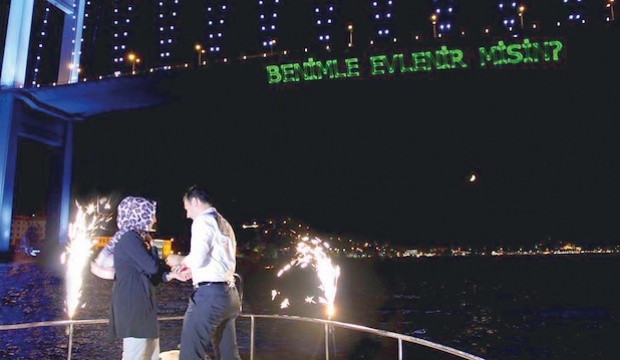 Tabii mevzu bununla da bitmiyor. Tekne düşünürseniz saati bin liradan başlıyor, köprüye lazerle yazı yansıtmak, yemek, müzik, garson hizmeti derken rakam en az 5 bin lirayı buluyor. Daha büyük organizasyonlarda ücretler tavan yapıyor. Yanında profesyonel fotoğrafçı getiren, çiftin hikayesinin filmi ve dahası derken fatura 10 binleri de aşabiliyor.