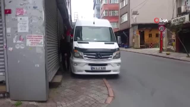 Fatihte kaldırıma park eden minibüs vatandaşlara zor anlat yaşattı