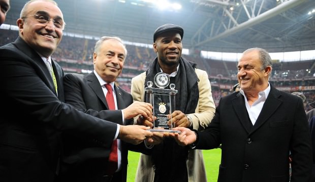 Spor Toto Süper Lig’in 27. haftasında Türk Telekom Stadyumu’ndaki Galatasaray - Evkur Yeni Malatyaspor müsabakası öncesinde sarı-kırmızılıların eski efsane futbolcusu Didier Drogba’ya plaket verildi. Drogba’ya plaketi Galatasaray Başkanı Mustafa Cengiz, İkinci Başkan Abdurrahim Albayrak ile Teknik Direktör Fatih Terim takdim etti.