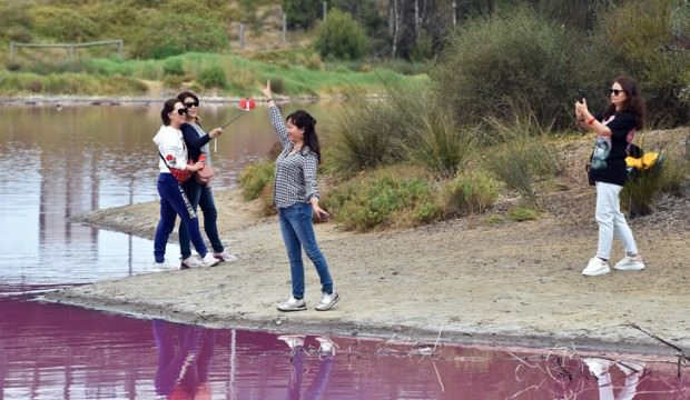 Avustralya’nın başkenti Melbourne’ın Westgate Parkında yapay bir göl pembeye döndü. Yılın belirli zamanlarında pembeye dönene göle, bu yıl da çok sayıda ziyaretçi geliyor. Çok fazla güneş ışığı, düşük yağış ve ılık sıcaklıklara maruz kalan gölün algleri beta karoten maddesi üreterek pembe bir pigment ürettiği belirtiliyor.