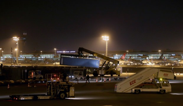 THYye ait ait malzeme ve araçların yüklendiği konteynerler, tırlarla aprondan İstanbul Havalimanına nakledilecek.