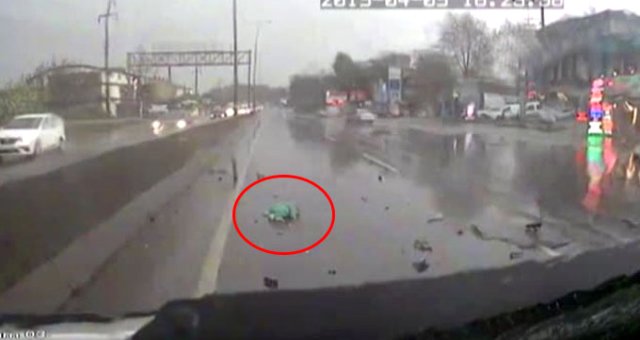 Kocaelinin Başiskele ilçesinde, sürücüsünün kontrolünü kaybettiği kamyonet yan yolda bulunan TIRa çarptı. 1 yaşındaki bebek kamyonetten yola fırlarken, o anlar arkadan gelen aracın kamerasına yansıdı.