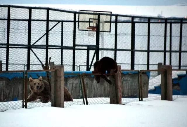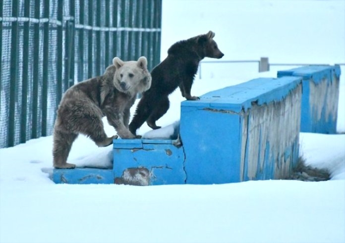 Sarıçam ormanları ve yılın büyük bir bölümü karla kaplı olan Sarıkamışta kış uykusundan uyanan ayılar, zaman zaman yavrularıyla yerleşim alanlarına inerek yiyecek arıyor.Özellikle ilçe çöplüğüne gelerek karnını doyuran bozayılardan biri de yavrusu ile ormanlık alandan çıkıp çevresi karla kaplı olan TOKİ konutları bölgesine geldi.