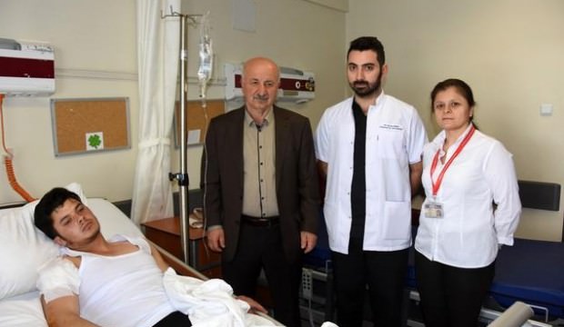 Yaşadığı olayı anlatan Recep Şahin, "Caminin çevresindeki korkuluğun üzerinden atlarken ayağım kaydı. Korkuluk demiri omzuma saplandı. Demir omzumun arkasından girip önünden çıktı. Babamı aradım. İtfaiyeden yardım istedik. İtfaiye demiri kesti. Hastaneye kaldırıldım" dedi.
