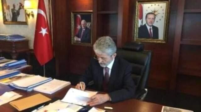 Tuna döneminde makam odasında, Binali Yıldırım ve Cumhurbaşkanı Recep Tayyip Erdoğanın portreleri bulunuyordu.