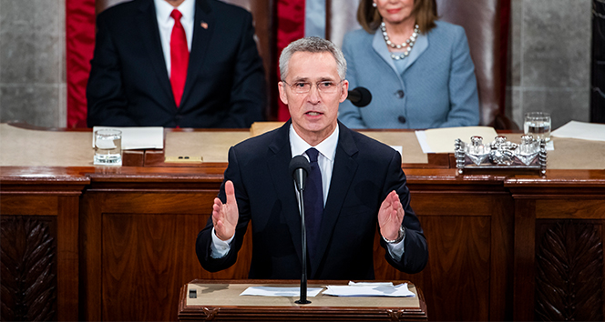 NATO Genel Sekreteri Jens Stoltenberg, ABD Kongresinde konuşma yaptı. NATOnun kuruluşunun 70inci yıl dönümü münasebetiyle düzenlenen Dışişleri Bakanları Toplantısı vesilesiyle geldiği ABDde olan Stoltenbergin konuşması sık sık alkışlandı. Rusyaya nazaran NATOnun Avrupaya karasal nükleer füze yerleştirme niyeti olmadığını belirten Stoltenberg, NATOnun caydırıcılık için her zaman gerekli adımları atacağının altını çizdi.