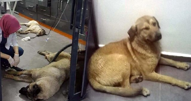 Bu kapsamda polis ekipleri, köpeklerin öldüğü yeri gösteren çevredeki binaların güvenlik kameralarını incelemeye aldı.