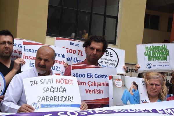12- 18 Mayıs Hemşirelik Haftası dolayısıyla kestirmece 20 nefis müşterek grup, Katip Çelebi Üniversitesi Mustafa Kemal Atatürk Eğitim ve Araştırma Hastanesi bahçesinde, yaşadıkları sorunları anlattı. Sağlıkçılar, 24 sayaç kez sağlığa zararlı, Ek ödemeler maaşa yansıtılsın, 8 saatin üstünde hastanede durmak istemiyorum yazılmış dövizler taşıdı, çarpıcı sözler attı. Sağlık ve Sosyal Hizmet Emekçileri Sendikası (SES) İzmir Şubesi Eş Başkanı Hülya Ulaşoğlu, icra ettiği açıklamada, şeb nöbetlerinin kendileri düşüncesince dava bulunduğunu belirtti. Ulaşoğlu, "Yasaya mucibince meslekte 25 yılını dolduranların kez tutmaması geçişsiz fakat burada 50 yaşındaki şahıslar üstelik hala kez tutuyor" dedi. Gece etkin personelin nice esenlik sorunuyla gönül rahatlığı karşıya kaldığını da kaydeden Hülya Ulaşoğlu, şeb mesaisinin 2 ile çarpılması icap ettiğini tabir etti.