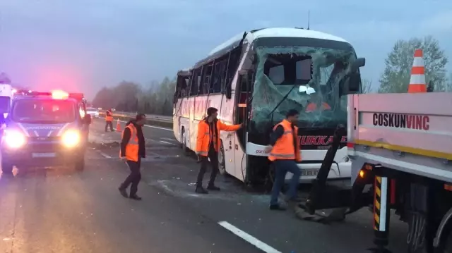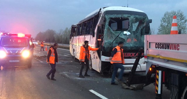 Sakaryada Anadolu Otoyolu Ankara istikametinde sürücüsünün direksiyon hakimiyetini kaybettiği yolcu otobüsü devrildi. Kazada 5i ağır 30 kişi yaralandı.