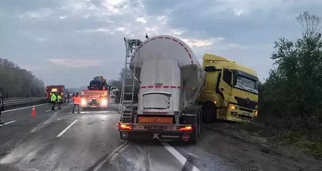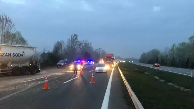 SODA YÜKLÜ TANKERİN SÜRÜCÜSÜ DİREKSİYON KIRINCA YOLDAN ÇIKTIKarayolları ekiplerinin önlem aldığı yolda, temizlik çalışması yapıldı. Bu arada kazayı son anda fark eden 06 JSZ 56 plakalı soda yüklü tankerin sürücüsü, otobüse çarpmamak için direksiyon kırınca araç yoldan çıktı.Öte yandan kaza nedeniyle yolda ulaşım, bir süre tek şeritten sağlandı.Kaza bölgesinden ilk görüntüler;![]()