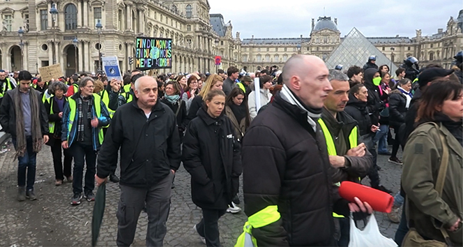 Fransa Cumhurbaşkanı Emmanuel Macron, Sarı Yeleklilerin Parisin meşhur Şanzelize Caddesinde gerçekleştirdiği şiddetli protestolar sebebi gösteri yapmasını yasakladı. Macronun Şanzelizeyi polis ve askerle ile kapatması üzerinde şehrin farklı yerlerinde toplanan Fransızlar eylemlerinin 19uncu haftasında yine sokakları doldurdu.
