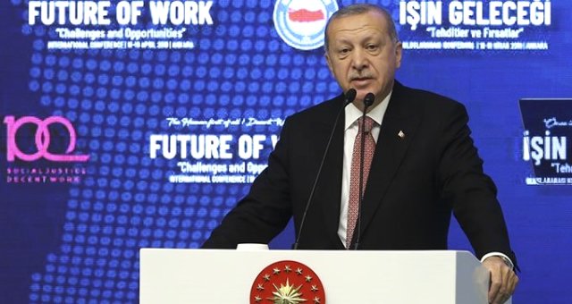Cumhurbaşkanı Recep Tayyip Erdoğan, Memur-Sen Konfederasyonunun düzenlediği uluslararası "İşin Geleceği: Tehditler ve Fırsatlar" konferansında konuştu.Erdoğanın açıklamalarından öne çıkanlar şöyle: Türkiyede ideolojik sendikacılığın yerini yeni bir sendikal anlayış almıştır.Türkiyenin son yıllardaki tüm demokrasi hamlelerinde Memur-Sen kritik rol oynamıştır.31 Mart itibariyle tamamlamış olduğumuz seçimlerden sonra bazı belediyelerdeki gelişmelerden rahatsızlık duyma gibi veya bulundukları yerde mücadelelerini kararlı bir şekilde sürdürüemeyenler sebebiyle Memur-Sen camiasının asla rahatsızlık duymaması gerekir. İnsanoğlu bir yere kadar menfaatleriyle yürür. Memur-Sen camiasının seçimler sebebiyle ortaya çıkan tabloda bulundukları yerlerde dimdik duracaklarına inanıyorum. Seni makamından mı alacak? Seni memurluktan atabilir mi atamaz. Bu ülkede bir hükümet var. Biz yapılacak zulümlere tribünden seyirci olmayız. Yapılması gereken neyse onu da yaparız. Bütün yargı ve yürütme mekanizmalarını her halükarda başta Memur-Sen olmak üzere yürütmek durumundayız. Memur-Sen camiası üyeleri sendikanı değşitir diyenlere karşı dimdik durmalı ve yerini korumalıdır. "FINANCIAL TİMES ŞÖYLE YAZMIŞ, NE YAZARSAN YAZ"Batı dünyasının belli kesimleri ekonomimizi çökmüş gibi gösterme gayreti içine giriyor. Türkiye dimdik ayaktadır güçlenerek de yoluna devam edecektir. Financial Times böyle yazmış, sen ne yazarsan yaz. Türkiyenin gücünü de kabullenecekler. Bunlar ilk kez bu başlıkları atmıyorlar. Ey Financial Times 4 milyon Suriyeliye ev sahipliği yapan Tükiyeyi sen tanıdın mı? Biz 4 milyon mülteciye ev sahipliği yaparken kimsenin doğru dürüst ciddi desteği olmadan harcanan 35 milyar dolardır. Onlar öyle yapacak biz doğrusunu yapacağız. Bu ülkemizdeki 4 milyon mülteciyi de bir yerden destek gelir mi diye beklemeyeceğiz. Bir tas çorba varsa o mülteci kardeşlerimizle paylaşarak yola devam edeceğiz. Boluda seçilen belediye başkanı ben onlara bir tas çorba vermem demişse de biz valilikler kanalıyla yedirmeye, içirmeye, giydirmeye devam edeceğiz. "EKONOMİK SALDIRIYA MARUZ KALDIK"Türkiyenin PKK ve FETÖ gibi terör örgütlerine karşı meşru mücadeleyi engellemeye çalışıyorlar. Asıl sorgulanması gereken iftiraların uluslararası kuruluşlar nezdinde alıcı bulmasıdır. Bizi birkaç marjinalin iftirası değil, iddialar teyit edilmeden Türkiye karşıtı her türlü habere prim verilmesi rahatsız ediyor.Türkiye olarak 31 Martta bir seçim maratonunu başarıyla tamamladık. 31 Mart seçimleri demokrasi şöleni havasıyla gerçekleşti. Dünyada bizim gibi bir katılım oranına sahne olan bir başka ülke adeta yok gibidir. Yüzde 85e varan katılım oranıyla yapılan seçimlerin bir kez daha hayırlara vesile olmasını diliyorum. ABDde bile yüzde 50nin altında katılım. Seçim sonuçlarının demokrasimizin kalitesini daha da artırdığına inanıyorum. Türkiyede son 6 yılda Gezi olaylarıyla başlayan çukur eylemleriyle bir üst aşamaya çıkan anti demokratik girişimlere ülkemiz muhatap oldu. 15 Temmuz darbe teşebbüsü tarihimizin en büyük ihanetlerinden biridir. Geçtiğimiz ağustos ayında ise ekonomik saldırıya maruz kaldık."OLAY PARTİME GELİNCE NİYE RAHATSIZ OLUYORSUNUZ?"Son 5 yılda 7 kez sandığa gittik. Biz hiçbir zaman seçim ekonomisine tevessül etmesek de seçimlerin ekonomide ağır bir yük oluşturduğu vakadır. Seçim döneminde yaşanan tartışmalar artık sona ermiş artık herkes günlük hayatına yönelmiştir. Seçim kanunumuz çerçevesinde yapılan hak arama mücadelesi demokrasının gereğidir. Kimse hak arama mücadelesine girdi diye, bu mücadeleyi verenleri hakaretle eleştirme yoluna gidemez. Her türlü siyasi parti geçmişten bugüne bu tür hak arama mücadelesini vermiştir. Olay partime gelince niye rahatsız oluyorsunuz? YSK noktayı koyduğu zaman bizim için de mesele bitmiştir. Ondan sonra yola devam. Türkiyenin bekası her türlü politik hesabın üstündedir. Özellikle içinde bulunduğumuz hassas dönemde siyasetçilerin sorumluluk duygusuyla hareket etmesi önem arz ediyor. Dönem kızgın demiri soğutma, birlik ve beraberliği yeniden perçinleme dönemidir. Yapısal reformları hayata geçirmeye devam edeceğiz. Şu anda turizmde yüzde 50 bandına ulaşmakta olan bir Türkiye var. Savunma sanayii ve turizmde yakaladığımız ivmeyi başka alanlarda da inşallah gerçekleştireceğiz. Times, Türkiye, Politika, Güncel