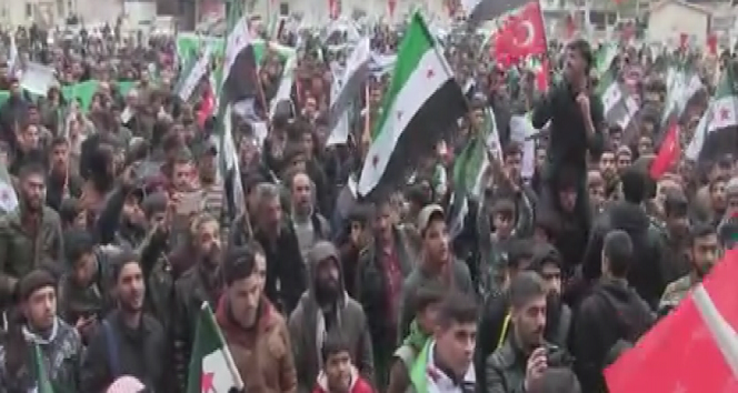 Yüzlerce Suriyeli Türk Silahlı Kuvvetlerinin (TSK) terörden arındırdığı El Bab kentinde Türk askerine ve Türkiyeye olan desteklerini göstermek için bir araya geldi. Suriyenin kuzeyindeki terör örgütü PKKnın yapılanmalarından dolayı evlerinden olduklarını belirten vatandaşlar, üzerinde Türkçe ve Arapça, "Fıratın doğusundaki operasyonu sabırsızlıkla bekleyip gasp edilen evlerimize dönmek istiyoruz", "Türklerin bölgemizdeki varlıklarından ancak Beşşarın çeteleri ve yeni akım şebbihalar rahatsız olur" yazılı pankartlar taşıdı.