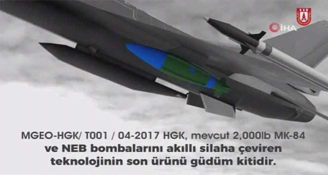 “MGEO-HGK/T001/04-2017 HGK, mevcut 2,000Ib MK-84 ve NEB bombalarını akıllı silaha çeviren teknolojinin son ürünü güdüm kitidir. Bağlı uçuş sırasında yeniden hedef belirleme, görev başında daha az bomba, sorti ve personel, karıştırmaya dirençli, tüm hava koşullarında çalışabilir, düşük lojistik ihtiyacı.”