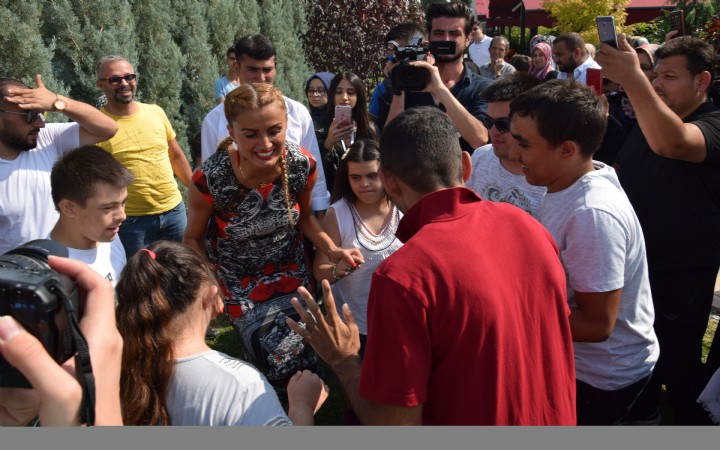 Vatandaşların büyük ilgisiyle karşılaşan Tuğba Özay, sevenleriyle saatlerce fotoğraf çektirdi. Kendini görmeye gelen Down Sendromlu, otizmli ve engelli çocuklarla tek tek ilgilenen ünlü sanatçı, onlarla dans etti.